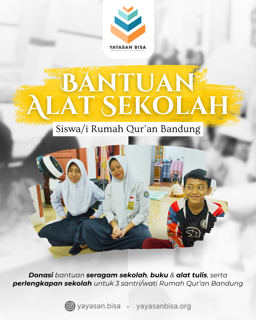 Bantuan Sekolah untuk 3 anak Yatim Dhuafa binaan Rumah Qur'an Mustad'affin Al-Falah di Bandung
